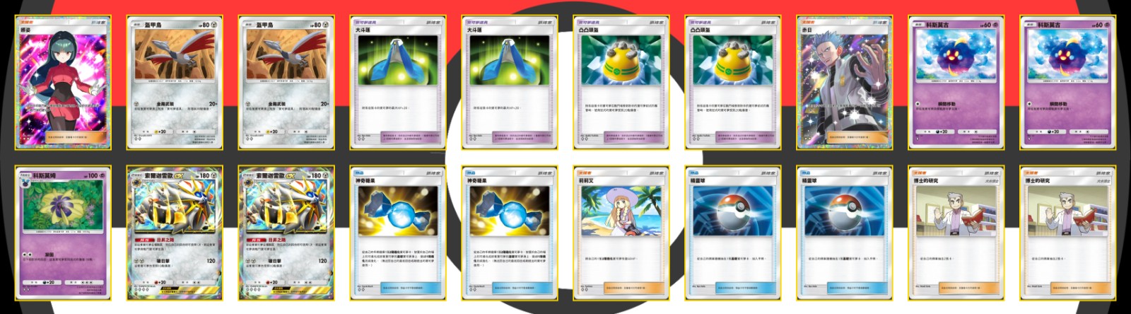寶可夢:科斯莫古 ×2、科斯莫姆 ×1、盔甲鳥 ×2、索爾迦雷歐ex ×2